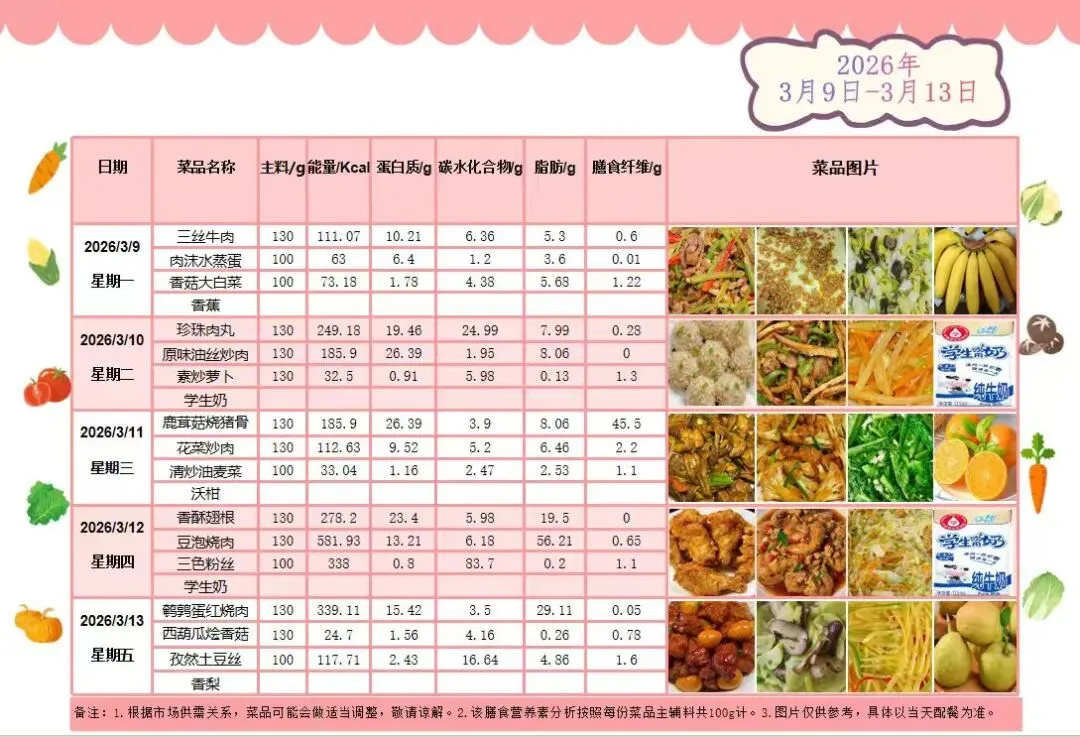 >南昌市豫章学校教育集团滨江校区学生菜谱公示(3.9--3.13)