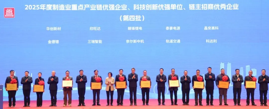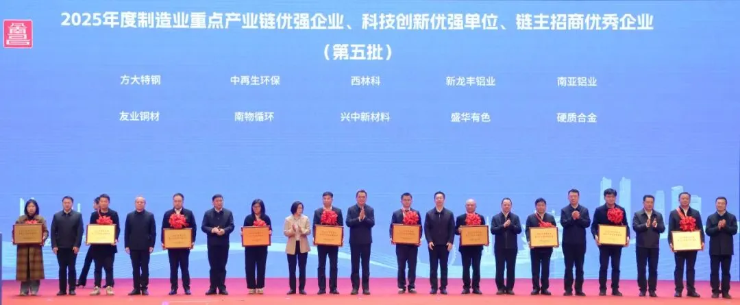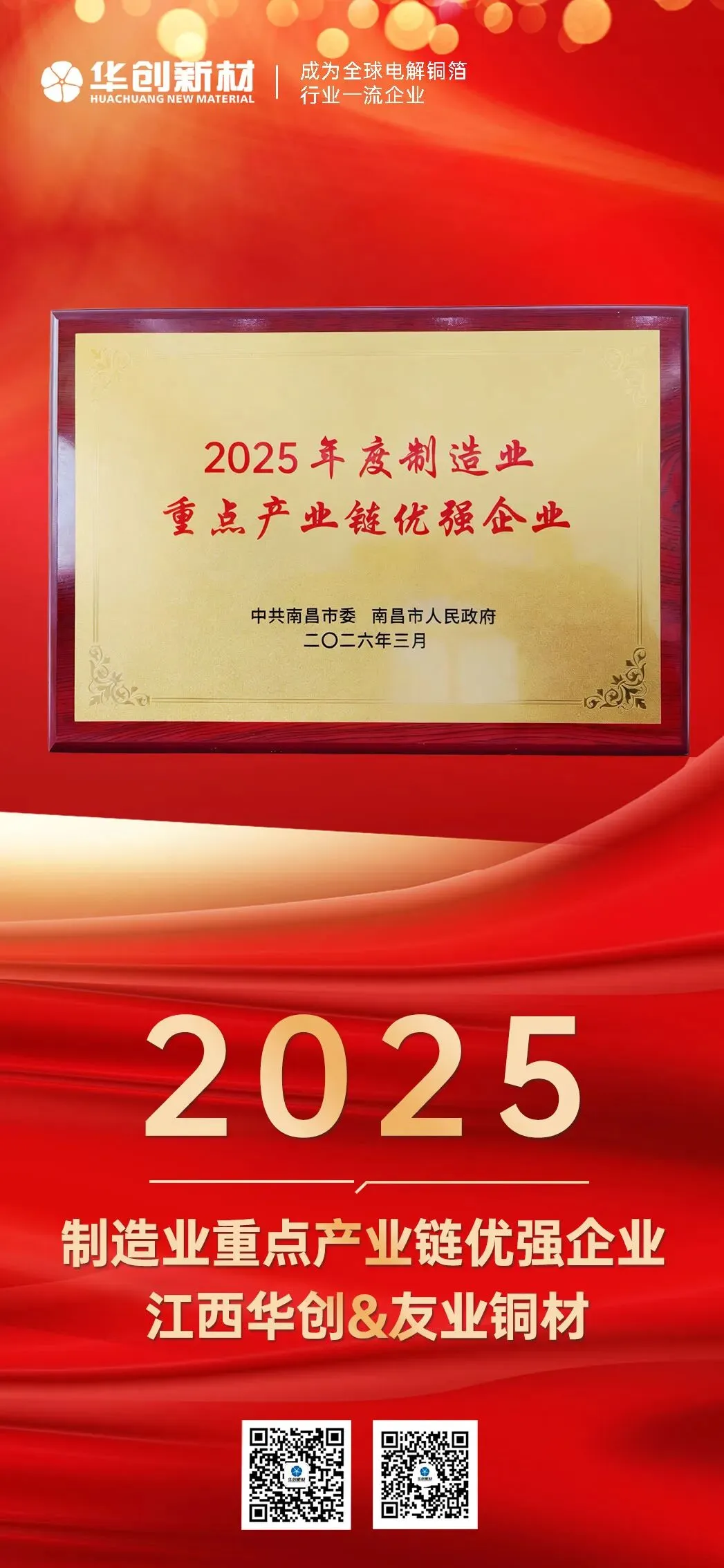 3月9日,南昌市深化推进“8810”行动计划暨科技创新发展大会召开。会上,江西华创新材有限公司及子公司南昌市友业铜材制造有限公司,双双荣获“2025年度制造业重点产业链优强企业”称号。