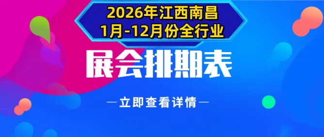 展会排期网-zhxxpq.com花费大量人力物力,坚持为大家整理编辑各地展会排期表,只因为我们知道这是您想要的信息,我们坚持做一个有内容、有价值的网络服务平台。据不完全统计,2026年1月-12月份江西省全产业链已知大小规模展会活动有近30场+...... 2026年全国即将有众多大牌展会悉数登场,行业涵盖了餐饮食材、大健康、家博会、清洁用品、烘焙、保健、跨境电商、食品、食品设备、纺织、酒店用品、跨境电商、半导体、五金、铁路轨道、汽车、化妆品、服装、机床、清洁用品、珠宝、宠物、家居、茶博会、农机、美容美妆展等多个领域。哪些精彩展会值得您重点关注和参与?敬请持续留意我们后续发布的详细展会信息排期预报哦!