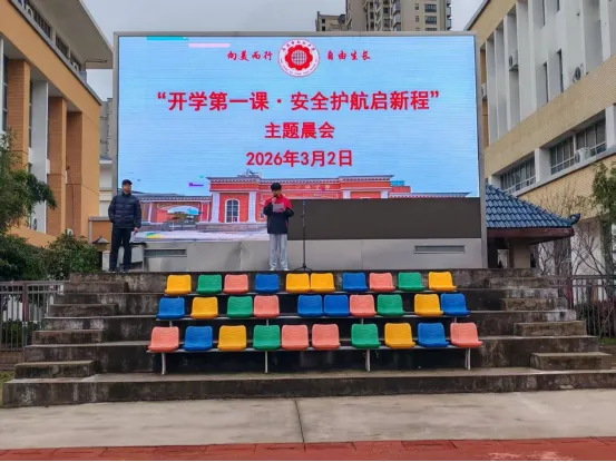 3 月2 日上午,学校以 “开学第一课・安全护航启新程” 为主题开展安全晨会,拉开了安全教育周的序幕。政教处统筹组织,学工处主任万跃作了主题发言,全校学生齐聚操场,共同聆听安全嘱托。晨会中,围绕消防安全、交通安全、心理健康、法制教育等核心内容,向全体学生普及安全基本知识,强调新学期安全行为规范,引导学生树立“安全第一、预防为主” 的思想,让安全意识成为新学期的第一课,为全体师生的校园生活奠定安全基石。
