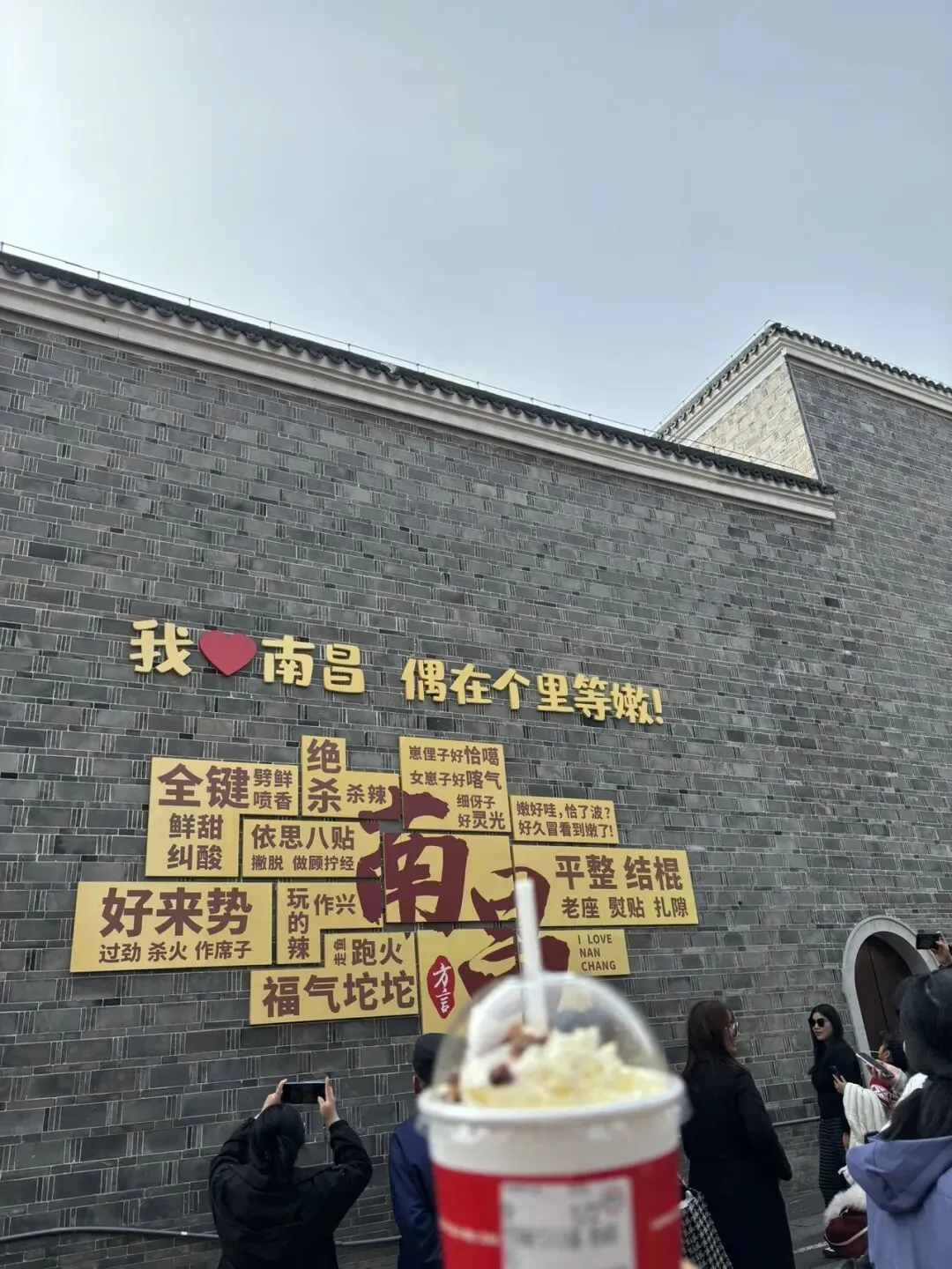 午饭去吃的超越猪血汤炸酱面,炸酱面不错,猪血汤也不错,就是第一口辣的呛死我,炒粉味道一般般,但是厨师真的好牛逼对火力和出锅的管控,锅气十足,味道在要糊但是没糊那之间,晚一秒出锅这粉算是完了,里面的大肠非常的原汁原味……细品……然后骑着共享单车去了万寿宫附近多条美食街,洪都大拇指奶茶和他家的烤肠、小敖臭豆腐、香香皮蛋肉粽(吃完肉粽,想尝尝据说有灵魂的碱水粽,外面轻裹了一圈白砂糖,我的个天,单一的糯米居然真的好吃)、酸野……肚子吃到撑,还好小伙伴机智的备了消食健胃片,果断来三颗。然后用步数去消化,去跟踪了一个李三姐热卤,找遍全网艰难的找到了她的联系方式结果没出摊……算鸟,就直奔滕王阁看外景了,溜完去吃宏记源赣南菜馆,藏在居民楼里的小餐馆是好吃,酸萝卜脆肠、芋头炖牛腩、空心菜、碎排…吃完饭正好赶上19点秋水广场的音乐喷泉。