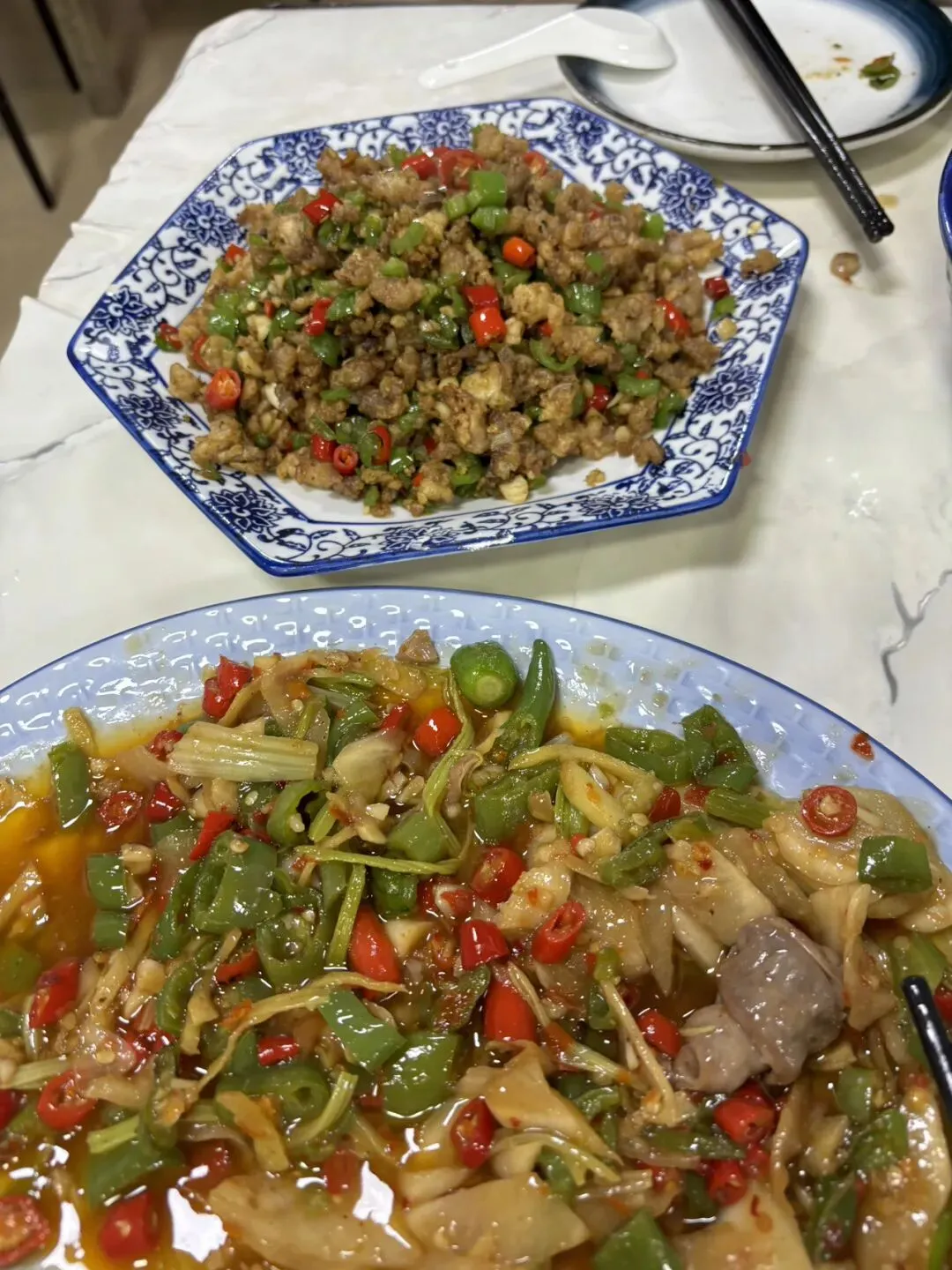 回到酒店差不多22点,这不又正好赶上夜宵时间,随机找了家飞哥烧烤,没踩雷,真好吃,鸡爪好吃,又很巧旁边有家水煮,点秋水几样尝尝。(插播一段,找的酒店性价比巨巨巨高,便宜又干净环境也不错,比如某家划算)周日早上又找了一家拌粉,黄记瓦罐煨汤,拌粉不好吃,麻烦从必吃榜除名。然后江西省博物馆是要去的,美术馆也去了。逛完又回到了美食街,哈哈哈哈哈哈,买了粽子带回去。回家前去排了胖子水煮,超长队伍,神奇的皮蛋拌方便面,麻团加在水煮里真的好奇妙的搭配,越吃越好吃。晚上21的点点硬卧上铺,又这样颠簸了11小时回到常州。