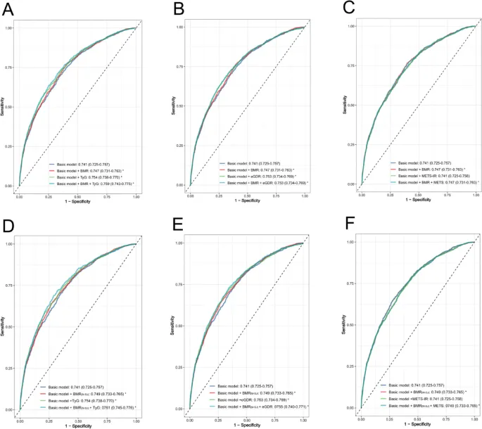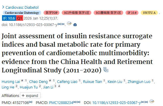 队列代表性:依托全国性的 CHARLS 队列,首次在我国中老年人群中,系统评估多种胰岛素抵抗替代指标与基础代谢率对心血管代谢共病的预测价值,结论更具普适性。
