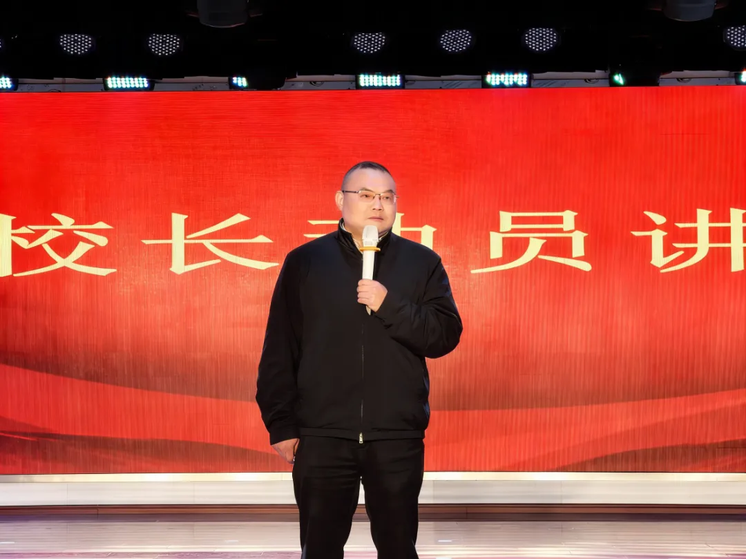 征程万里风正劲,重任千钧再出发。校长张雪峰上台发表了振奋人心的动员讲话,为初三学子冲刺百日指明方向。张校长以习近平总书记的讲话精神为指引,结合宇树机器人创始人王兴兴的创新拼搏故事、华为公司孟晚舟女士的坚韧坚守历程,字字铿锵、句句恳切,勉励全体初三学子,百日时光虽短,却是梦想绽放的关键征程,要以榜样为力量,坚定信念、脚踏实地,以无畏的勇气直面中考挑战,以不懈的努力书写青春答卷,让拼搏成为青春最亮丽的底色。