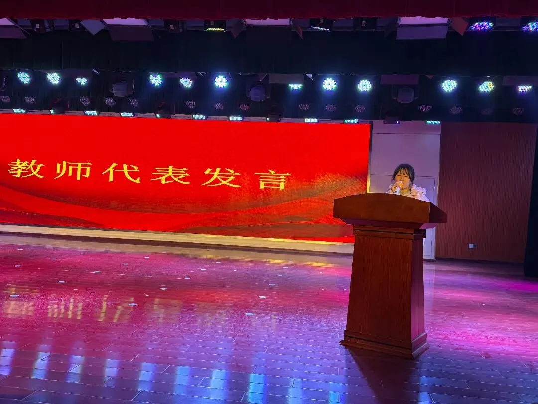 三尺讲台存日月,一支粉笔写春秋。教师代表梁思怡老师登台发言。她坦言深知学子们的疲惫与焦虑,却也强调中考是知识、心态与意志的三重对决。她代表全体初三教师郑重承诺,将做学子们攀登路上的阶梯、渡河时的舟楫,在困惑时答疑解惑,在疲惫时加油鼓劲,在迷茫时点灯引路,与同学们风雨同舟、并肩作战到最后一刻。