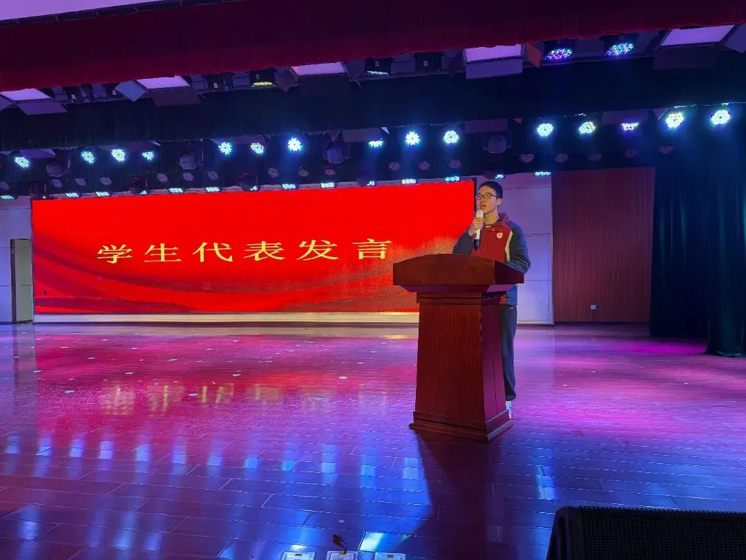 恰同学少年,风华正茂。学生代表初三(1)班梁轩嘉同学分享了自己一步一个脚印踏实前行的感悟。他号召全体同学要怀“黄沙百战穿金甲,不破楼兰终不还”的决心,守“衣带渐宽终不悔,为伊消得人憔悴”的执着,拥“长风破浪会有时,直挂云帆济沧海”的豪情,紧跟老师步伐,夯实知识基础,珍惜百日时光,以笔为剑、以勤为径,不负师长厚望,不负父母期盼,不负韶华青春。