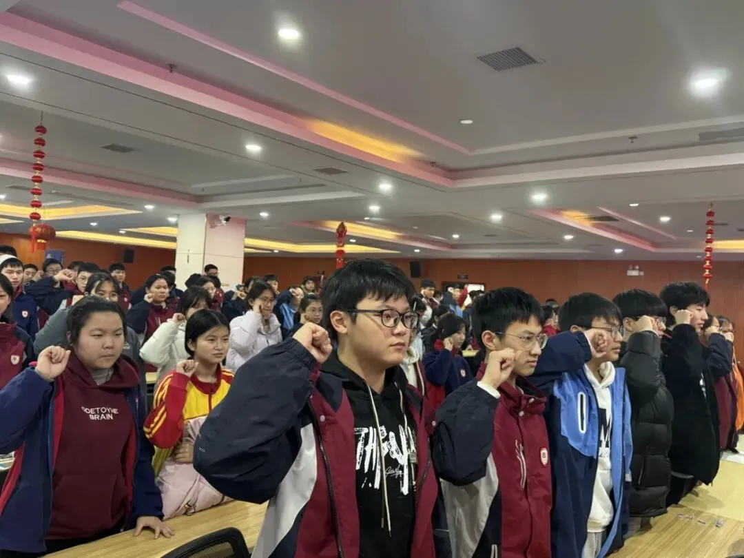 誓言铿锵,初心如磐。全体初三学子集体宣誓环节将大会推向高潮。全体初三同学昂首挺胸、高举右拳,用最洪亮的声音、最坚定的信念喊出铮铮誓词,铿锵的誓言在礼堂久久回荡,尽显少年们决战中考、誓创佳绩的昂扬姿态,每一句呐喊,都是青春的宣言,都是冲刺的决心。