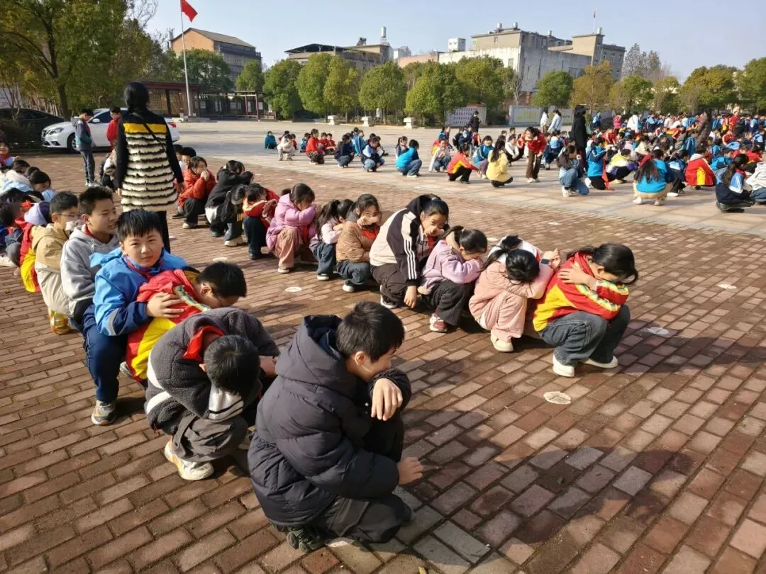 师生们迅速疏散到学校操场的指定集合地点。各班级到达集合点后,立即按照预定的队列集合,班主任迅速清点人数,并向现场总指挥报告班级人数情况。