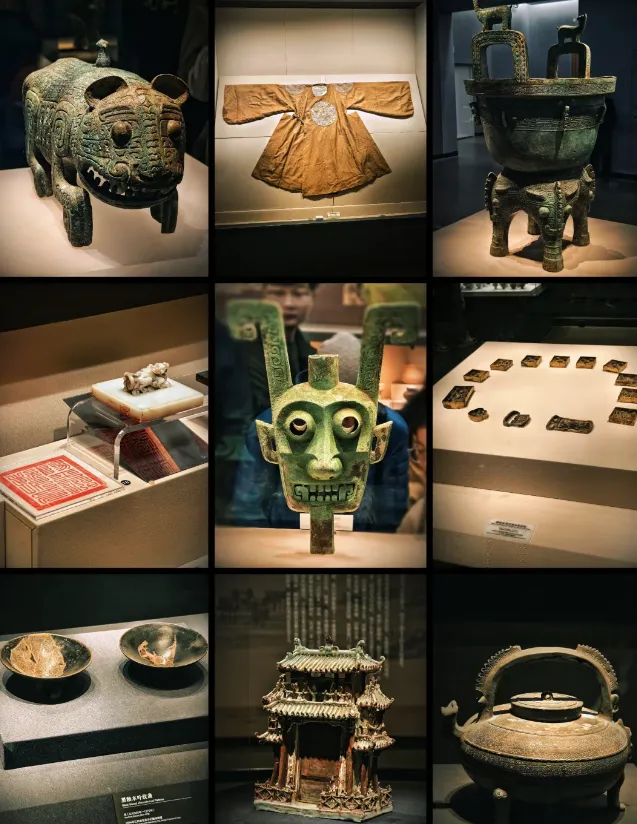 在这里,我们也可以看到很多镇馆之宝,商双面神人青铜头像是来自商代晚期的文物,距今已有3000多年的历史,是国内迄今所见唯一的双面神人青铜像。