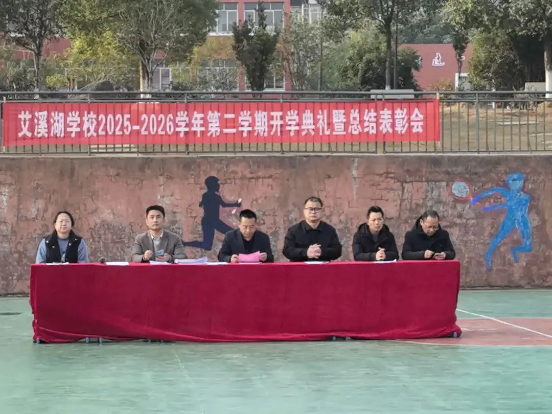 阳春布德泽,万物生光辉。沐浴着三月和煦的春风,怀揣着对新学期的美好憧憬与热切向往,3 月 10 日清晨,南昌高新区艾溪湖中学 2026 年春季开学典礼暨表彰大会隆重举行。校长胡长文,副校长何良二、熊能文、胡辽云,主任冯敏、余跃华出席本次典礼。全体师生精神抖擞、整齐列队,以昂扬饱满的姿态共赴这场春日之约,典礼由副校长何良二主持。