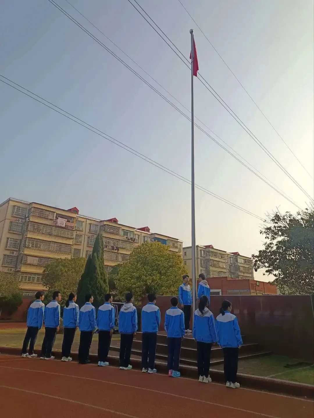开学典礼在庄严的升旗仪式中拉开序幕。国旗护卫队步伐铿锵、整齐有力,护送五星红旗来到升旗台前。伴随着雄壮嘹亮的《义勇军进行曲》,五星红旗冉冉升起,全体师生肃立注目,目光追随国旗,心中满是崇敬与昂扬的斗志。