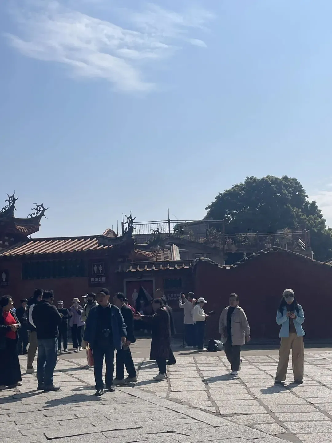 走出寺门,西街已经人声鼎沸。卖面线糊的摊子前排着长队,骑着电动车的外卖小哥穿梭在人群里,开元寺的红墙在阳光下格外耀眼