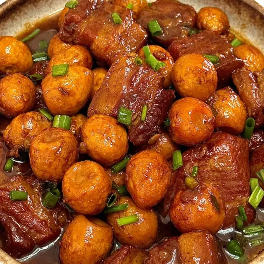 鹌鹑蛋烧肉 鹌鹑蛋60克、猪肉100克