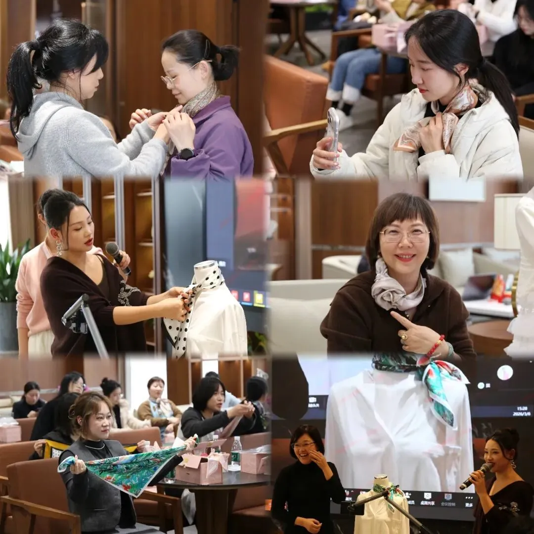本次活动通过“丝巾美学”与“香氛调制”两大特色环节,为女性员工打造沉浸式美学体验。活动现场,专业美学导师以丝巾为媒介,带领女性员工探索职场与生活的穿搭巧思。从经典的“爱马仕结”到灵动的“蝴蝶结”,从职场干练系法到休闲度假风搭配,解锁丝巾在颈间、发梢、包袋上的多元应用场景。员工们纷纷动手尝试,通过小组登台展示学习成果。