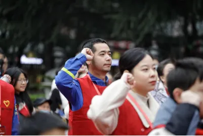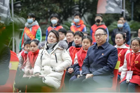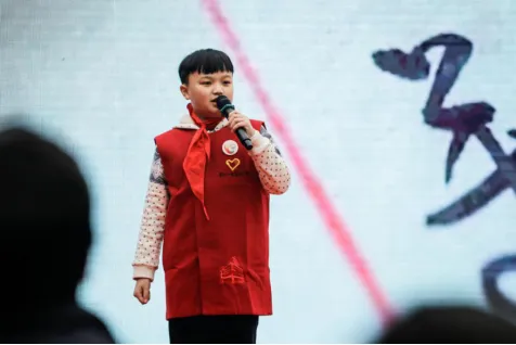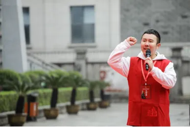 领誓人毛浩夫带领红色故事百人团宣读入团誓词