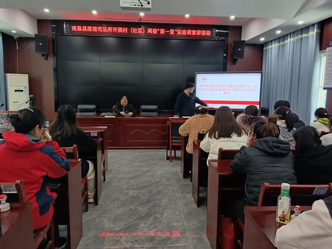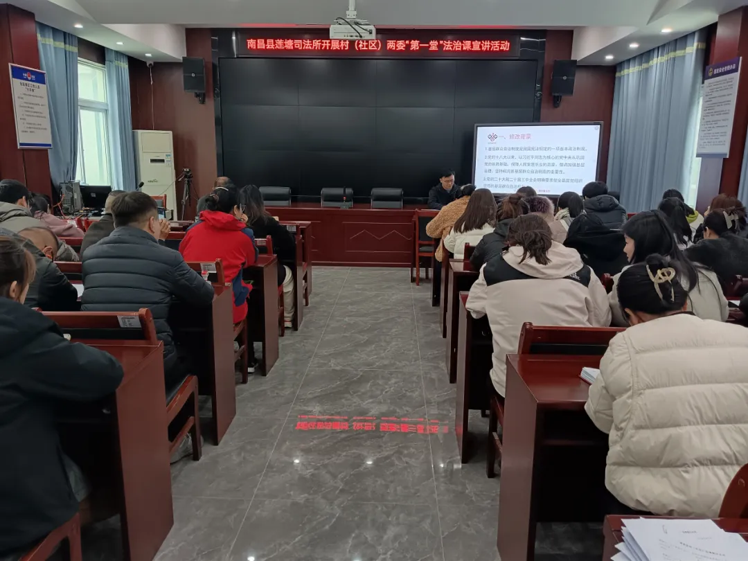 为强化新一届村(社区)“两委”班子成员法治意识,提升依法履职能力,3月9日,南昌县莲塘司法所邀请江西求正沃德律师事务所李志豪律师,为村(社区)“两委”干部开展履职“第一课”法治宣讲活动,从严从实把好新任干部履职“起步关”。