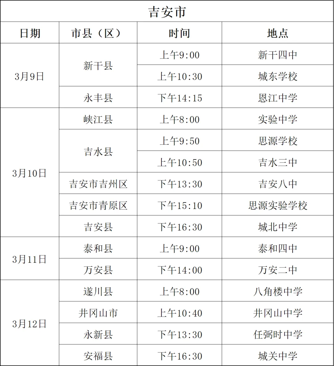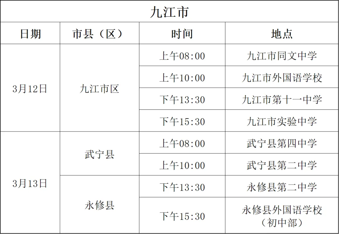 在省教育厅、各地市县区教育主管部门和初中学校的支持下,江西省海军青少年航空学校(南昌二中海航班)组建政策宣讲团队,将于2026年3月9日-3月13日奔赴除南昌市外的各地市县区,配合各县区组织2026年江西省海军青少年航空学校招生政策宣讲会!欢迎立志海空的学生及家长关注,可以到现场参加咨询会,详情请咨询学生所在初中学校。