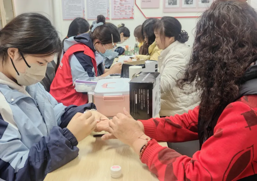 3月6日下午,大院街道民政服务站联合南昌新时代文明实践志愿服务促进会、南昌妆典技工学校在南京西路南社区开展“指尖焕彩・美妆绽放”巾帼志愿服务暖人心活动,以美甲、美妆便民服务为纽带,让社区女性在家门口享受精致服务,共度温馨美好的节日。