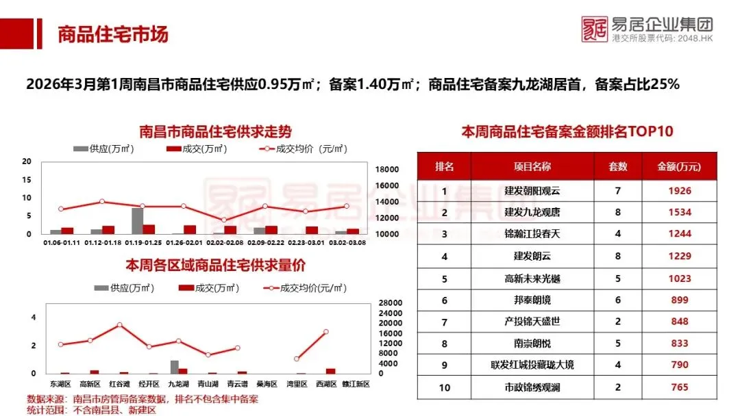 【2026年3月第1周】南昌市房地产市场周报