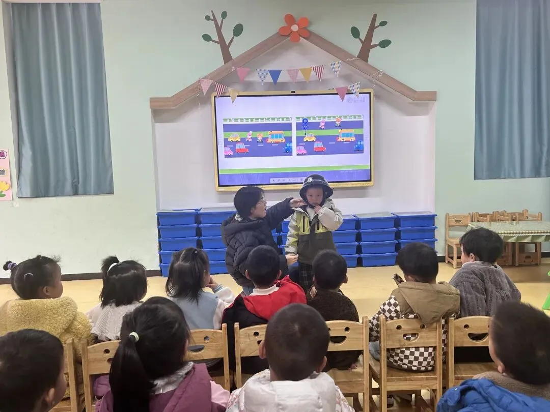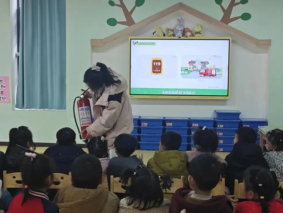老师们在集体活动中通过观看视频、情景模拟、互动游戏、实战演练等孩子们喜爱的方式,开展安全教育活动。从认识身边的消防标志和消防器材、学习火场逃生,到牢记交通规则、文明安全出行;从法治启蒙、规则意识培养,到心理关怀、缓解入园焦虑,每一项内容都贴近幼儿生活,每一次互动都充满温暖与力量。