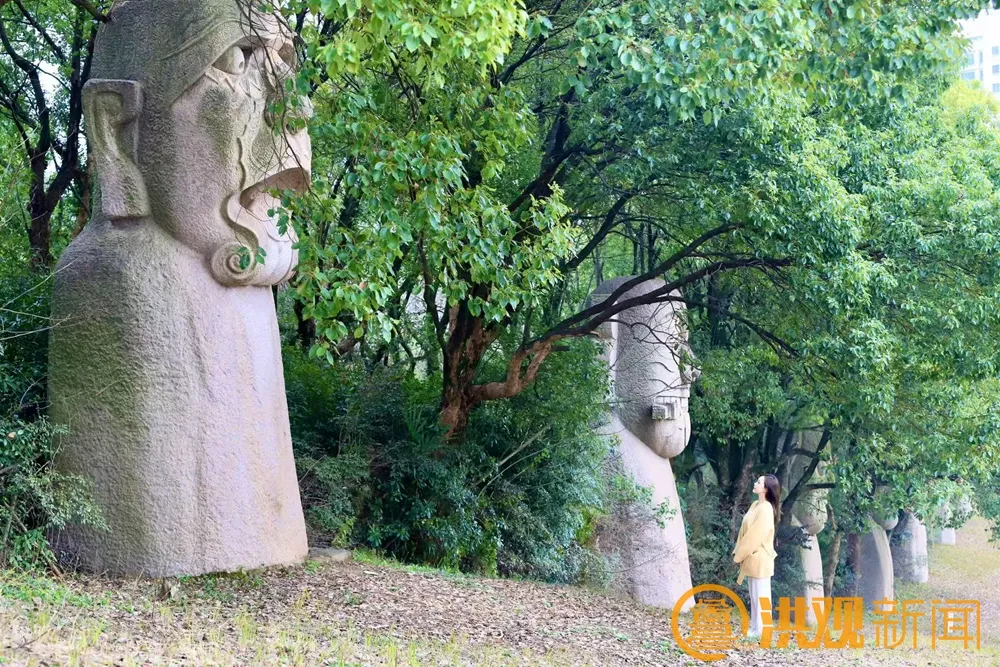 巨型傩神雕像气势恢宏,