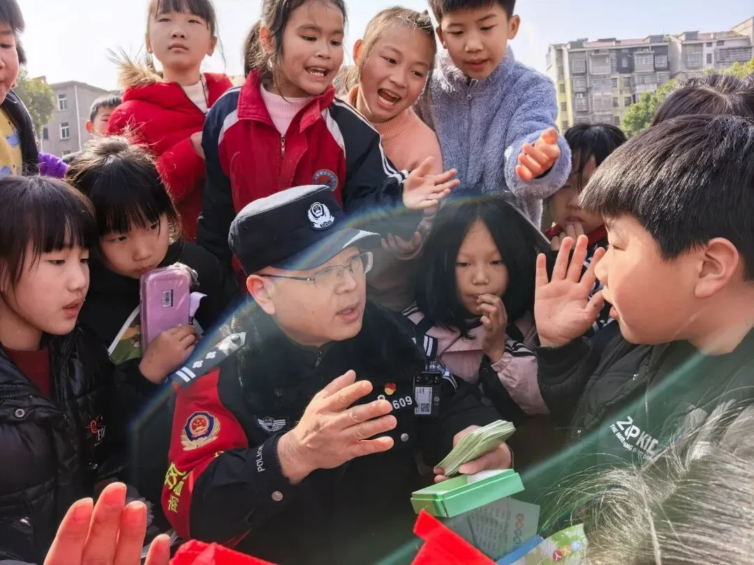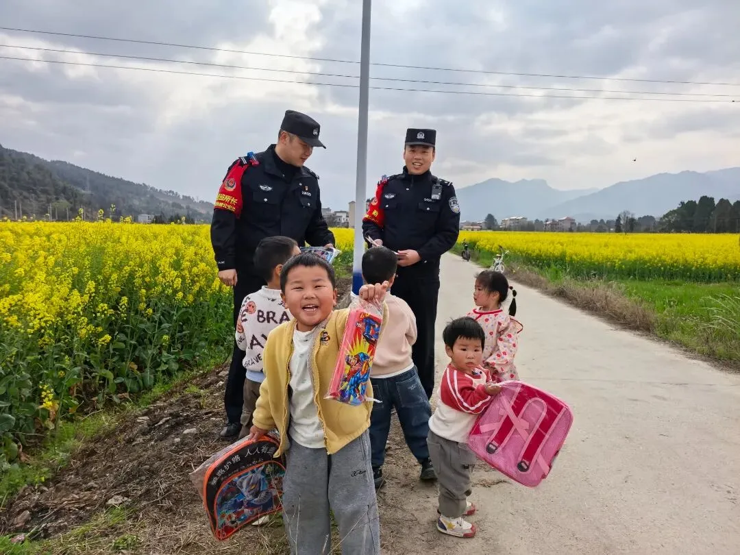 故事:新学期伊始,余干所民警深入沿线小学,将安全知识与爱心书包一同送到孩子们手中。生动的“开学第一课”,既播下安全种子,也传递警民温情,为学子们铺就平安上学路。