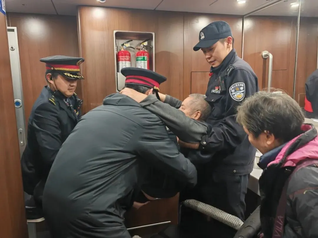 故事:春运期间,一旅客在列车上突发身体不适,乘警与列车工作人员第一时间协同处置,助乘客转危为安。