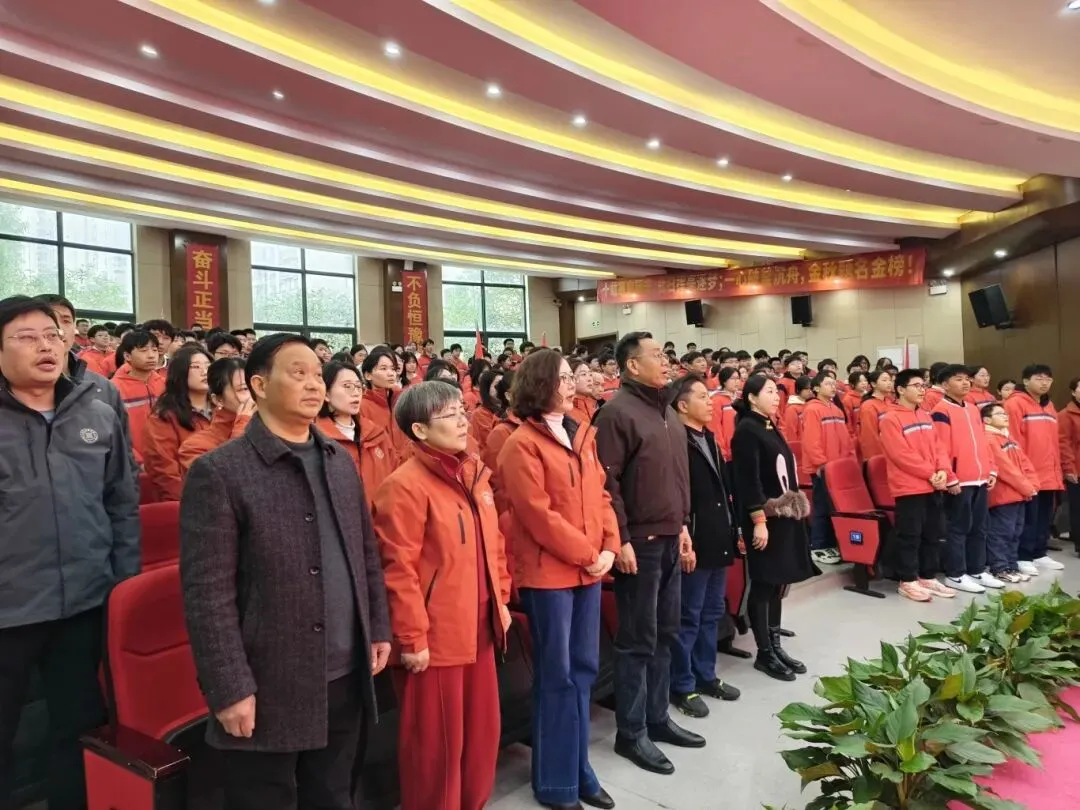 在庄严激昂的国歌声中,全体师生神情肃穆,目光坚定,浓浓的爱国情怀与坚定的奋斗之志,在每一个人心中激荡,也为这场百日誓师大会定下了激昂奋进、全力以赴的主旋律。