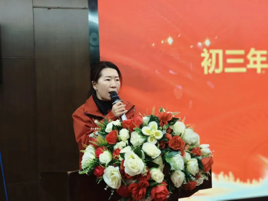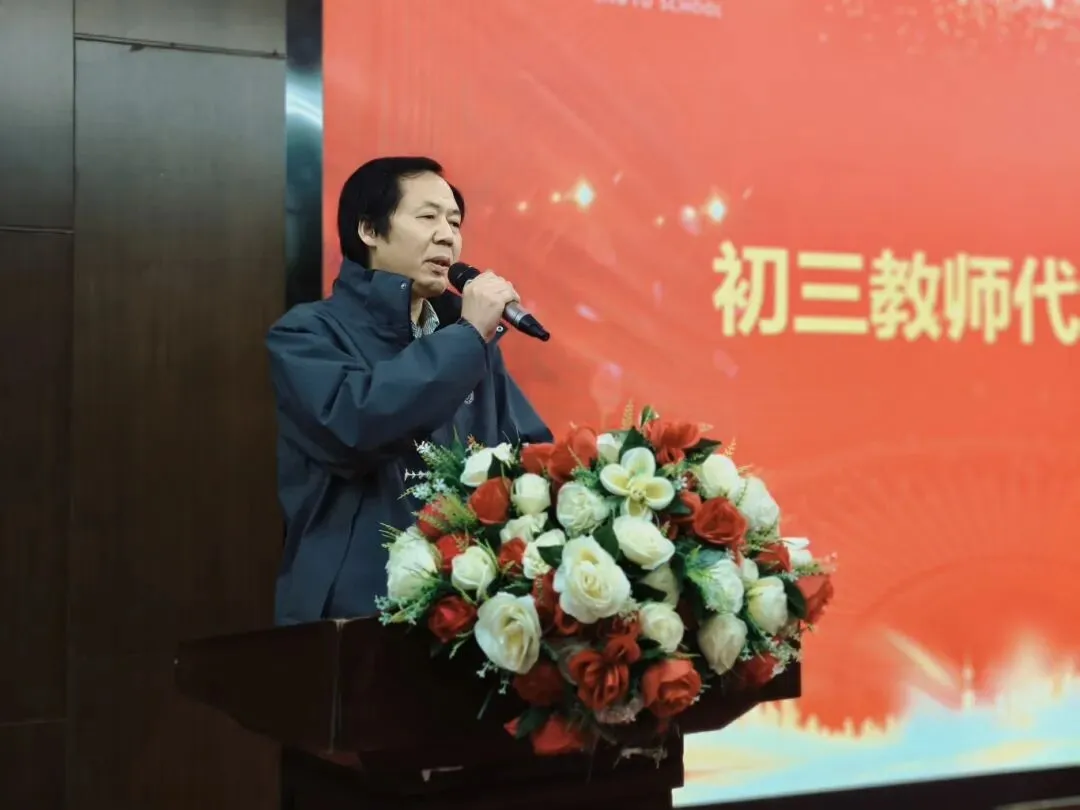 赵老师代表全体初三教师作出郑重承诺:备考百日,全体教师将始终与学子们并肩作战、朝夕相伴,做学子们最坚实的依靠、最温暖的后盾,全程为大家答疑解惑、查漏补缺、加油鼓劲,倾尽所能助力每一位学子圆梦中考,绝不辜负学校的信任与家长的重托。