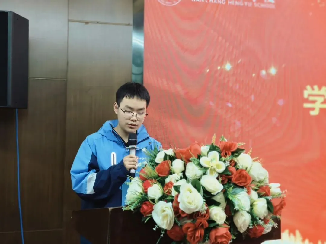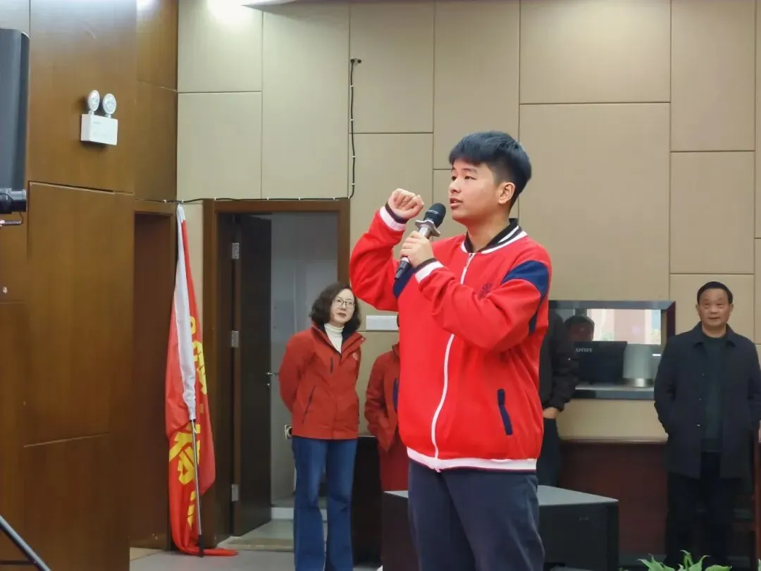 学生代表杨鸿涛同学意气风发登台,发言声情并茂、真挚动人。他结合自身备考心得,为同学们分享实用的复习经验与备考心态,代表全体初三学子庄严宣誓:百日冲刺,必将拼尽全力、分秒必争,不留遗憾、不负青春!朴实无华的话语里,尽显少年担当,更凝聚了全体同学奋勇拼搏、决战中考的坚定信念,引发了全场学子的强烈共鸣。