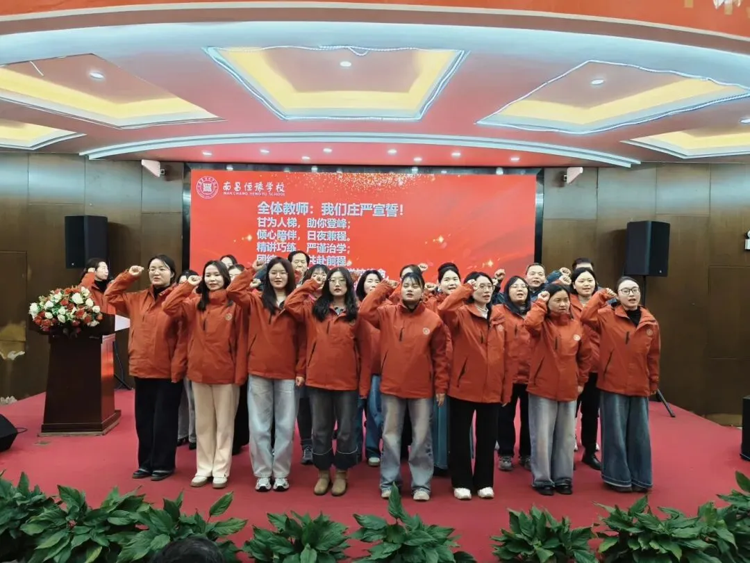 一声声誓言响彻会场,字字千钧、句句赤诚,这不仅是全体初三教师对教育使命的坚守,更是对学子们的郑重承诺,展现出恒豫教师团队凝心聚力、全力以赴的责任与担当,深深感染了现场每一位家长与学子。