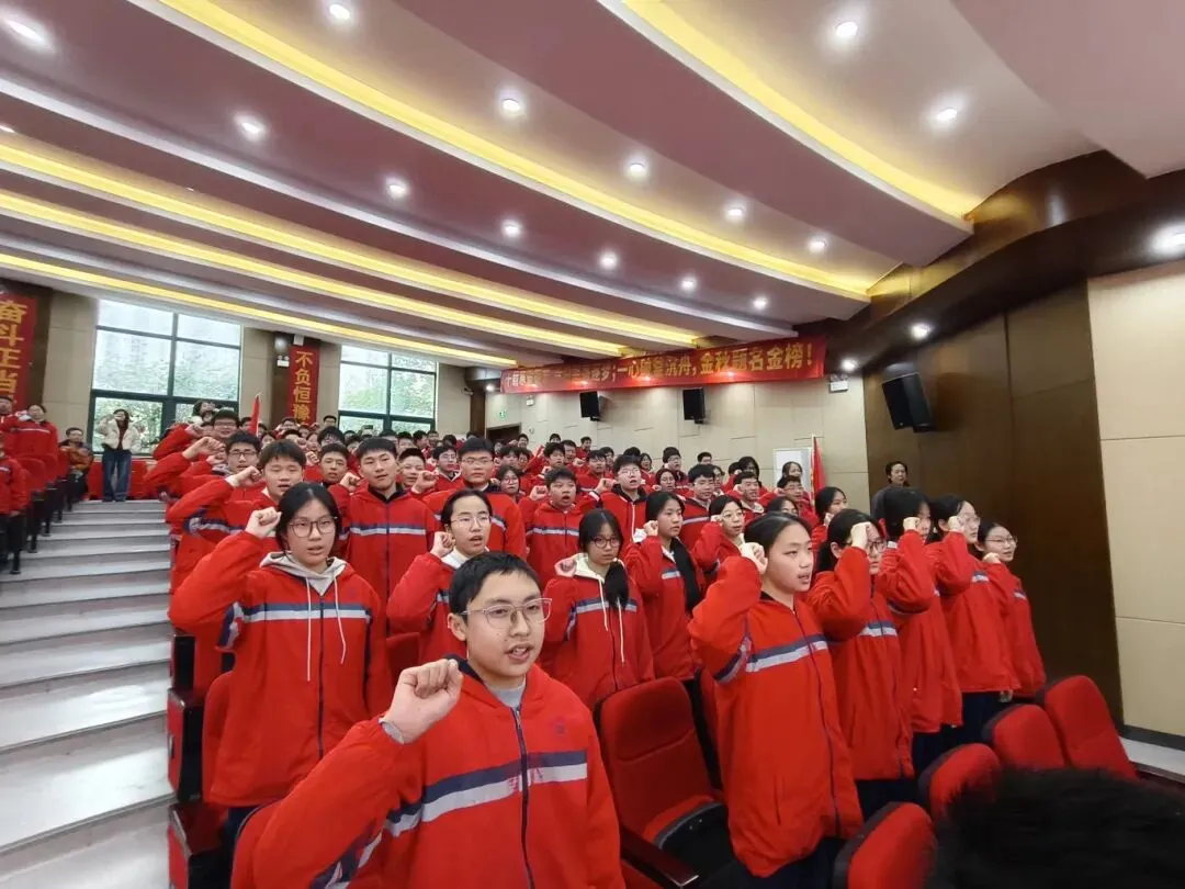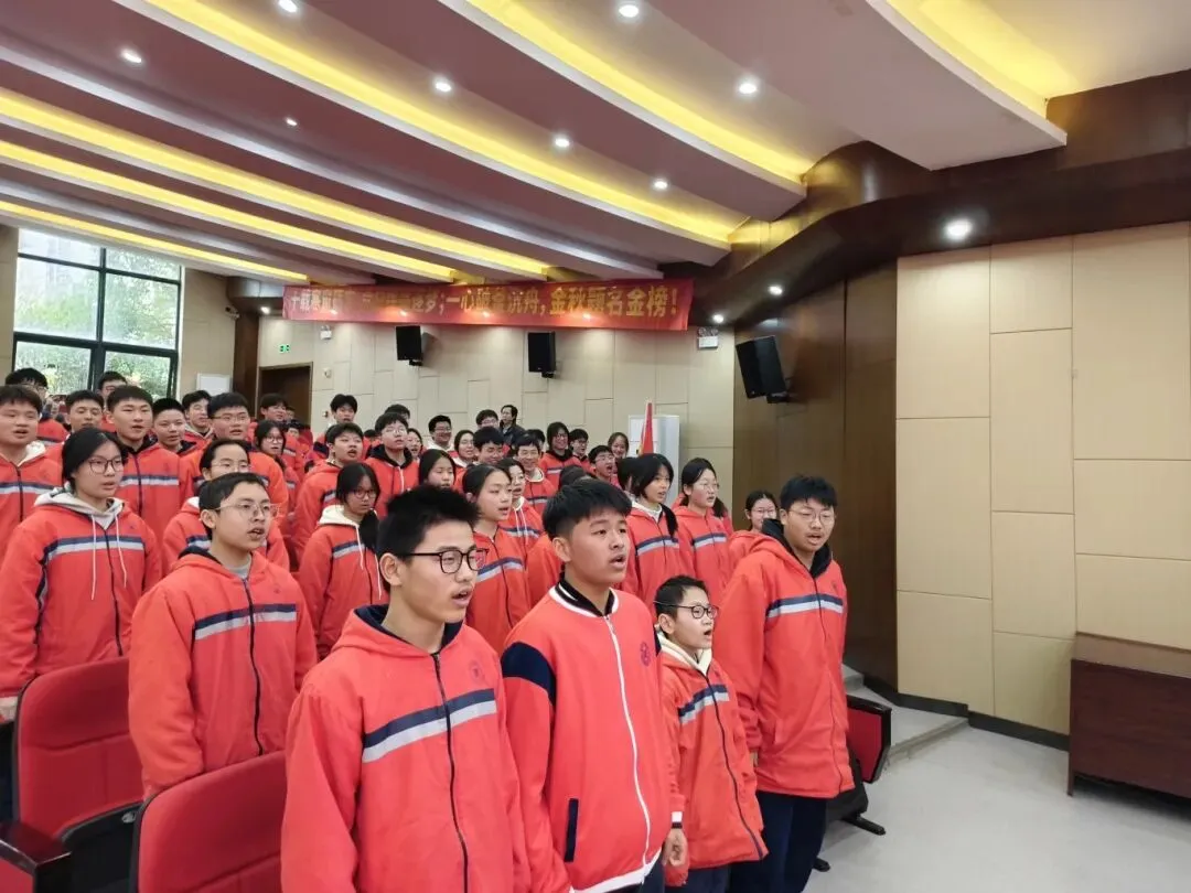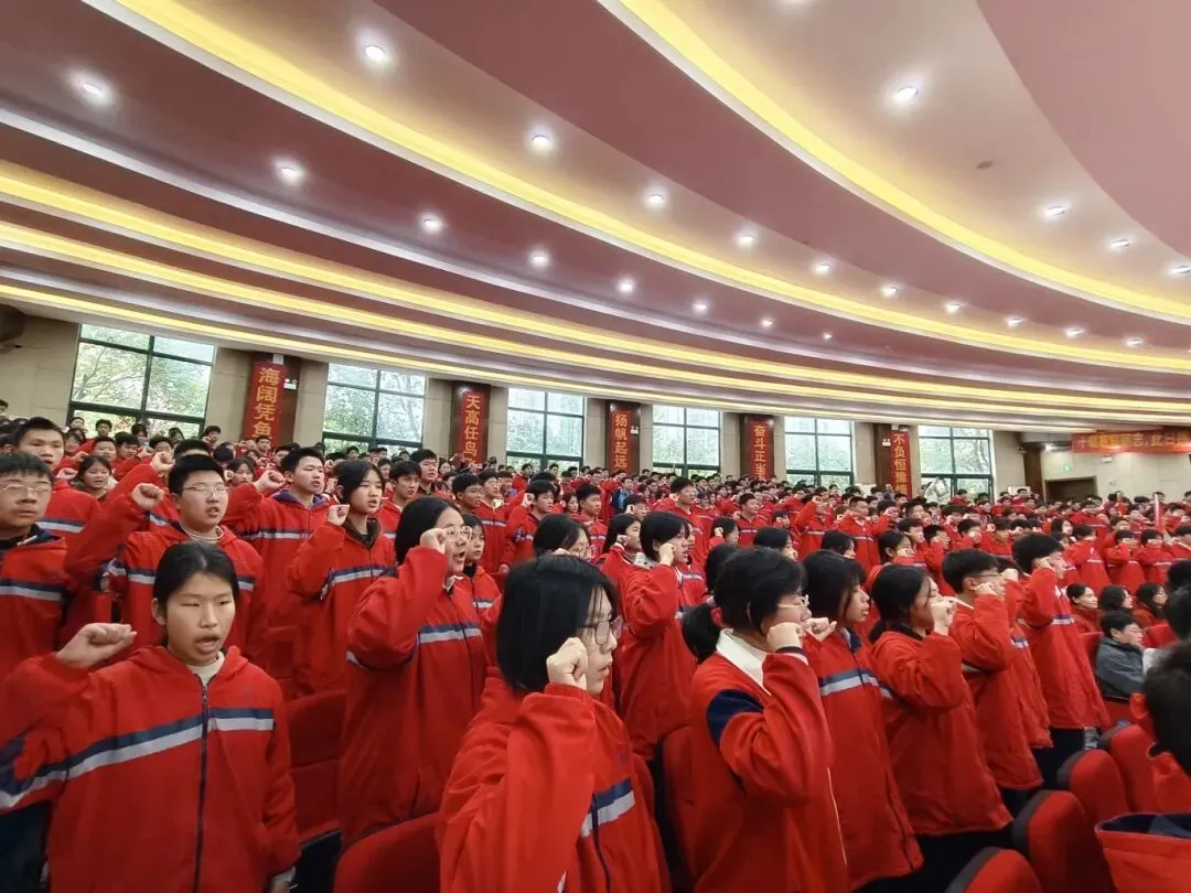 少年们的呐喊震耳欲聋、响彻全场,满腔热血化作铮铮誓言,这是对百日冲刺的坚定承诺,更是对六月中考的必胜宣言。坚定的誓言里,藏着少年们破釜沉舟的勇气,更藏着势在必得、金榜题名的信心,将现场氛围推向高潮。