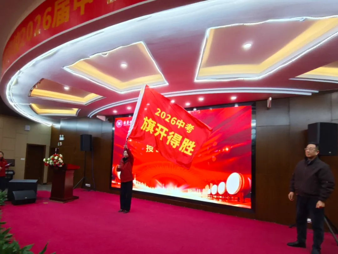 一面鲜红战旗,承载着学校的期望与重托,点燃全体师生的奋斗激情。这是百日冲刺的冲锋旗,是奋勇向前的领航旗,更是决战中考、勇创佳绩的信心旗。旗在手中、责任在肩,胜利在望、未来可期!