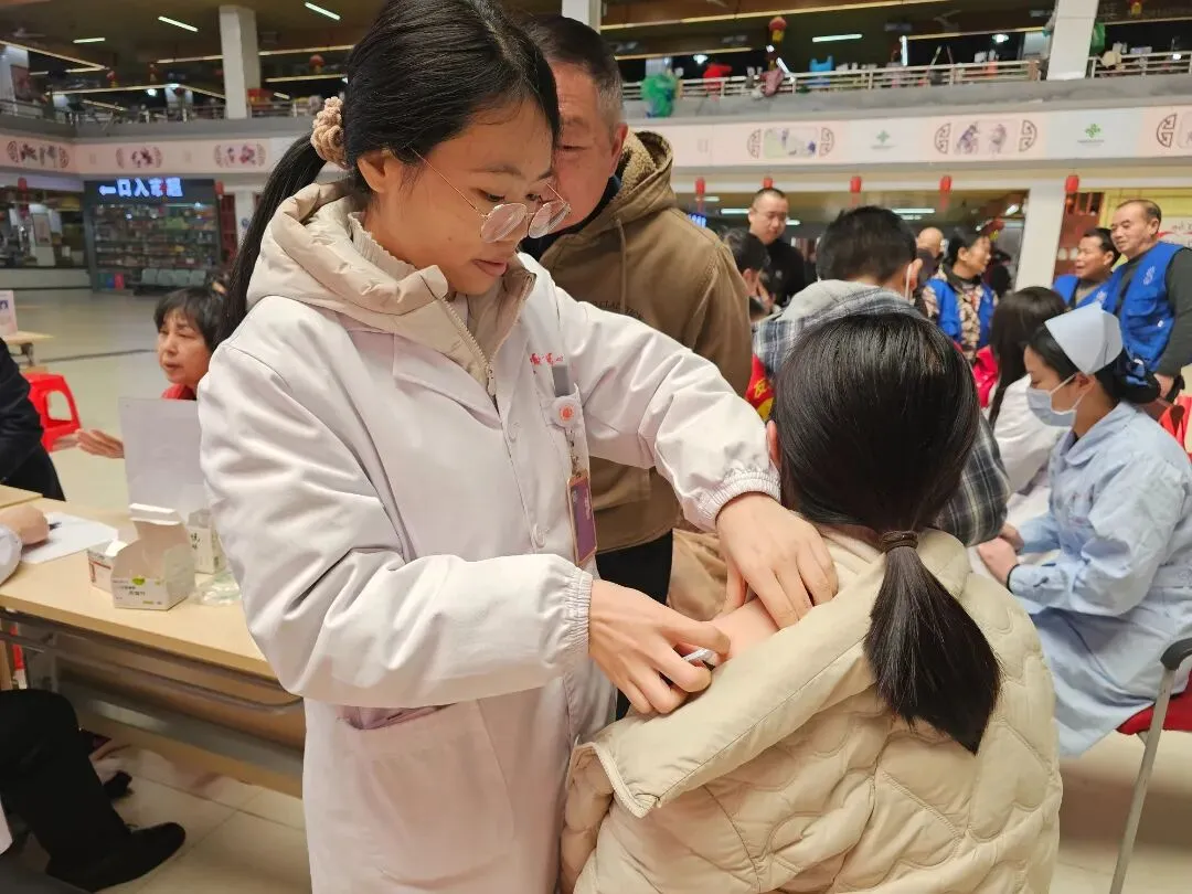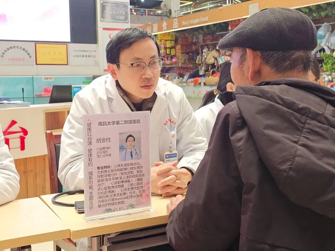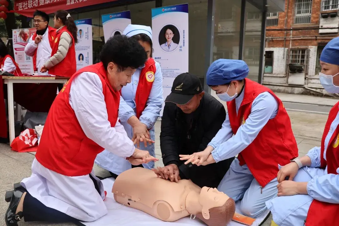 3月4日上午,南昌大学第二附属医院联合西湖区红十字会、丁公路街道,在兴柴南苑休闲广场开展“医社联动 健康同行”学雷锋志愿服务。心内科、内分泌科、骨科、耳鼻咽喉头颈外科、药学部等多学科专家,为居民提供免费健康咨询、血压血糖检测、疾病筛查及用药指导,并普及心肺复苏、海姆立克急救等应急救护技能,把优质医疗服务送到居民身边。