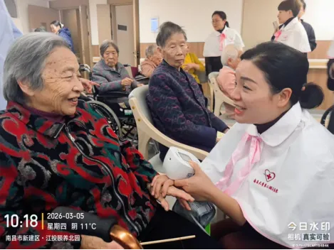 3月5日学雷锋纪念日,南大二附院红十字志愿护理服务队十余名志愿者,在刘肇清姥姥、胡敏队长带领下走进江投颐养北园养老院,送上慰问品与健康科普书籍,带领做“土豆操”、陪老人聊天;还讲解防跌倒知识并示范实操,为护理员赠物资和手册,同时为老人测血压查血糖、解答健康问题并给出个性化健康建议,践行志愿精神。