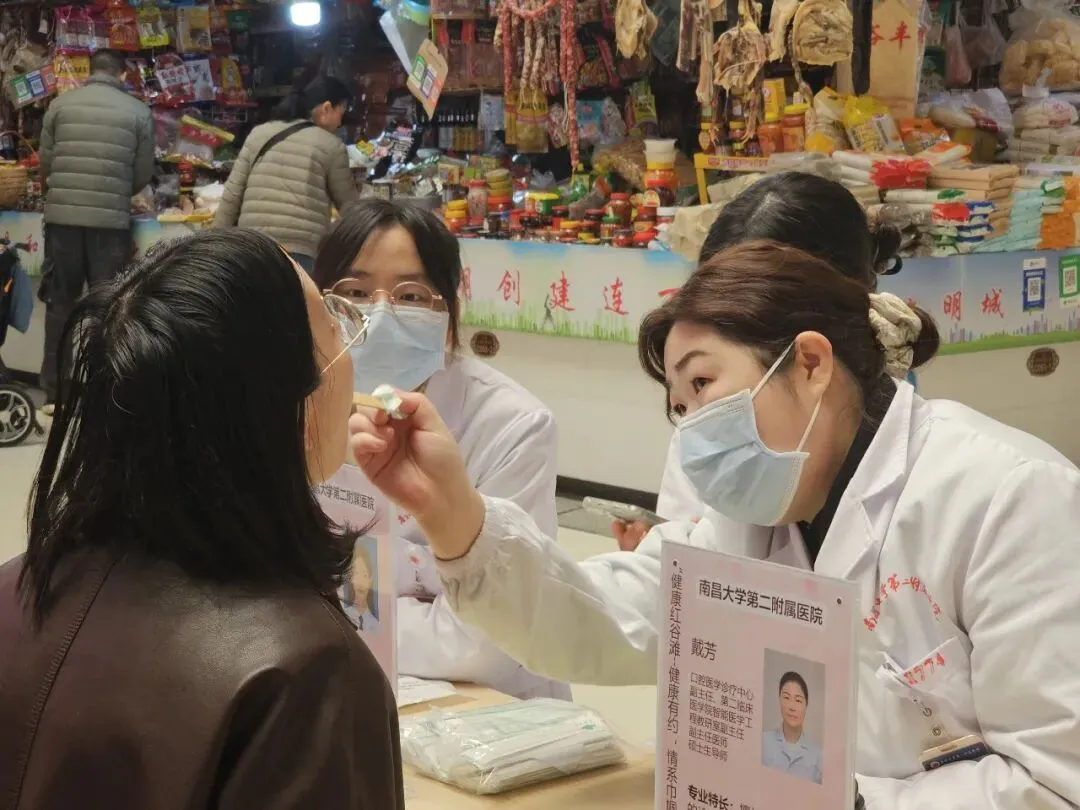 为庆祝第116个“三八”国际妇女节,3月7日,由红谷滩卫生健康委员会、卫东街道办事处、南昌大学第二附属医院及卫东社区卫生服务中心联合举办的“健康红谷滩——健康有约,情系巾帼”大型公益义诊活动,在红谷滩卫东街道沁园农贸市场顺利举行。我院派出全科医学科、口腔科、心血管内科、妇产科、眼科、中医科的10余名专家,惠及周边居民100余名。