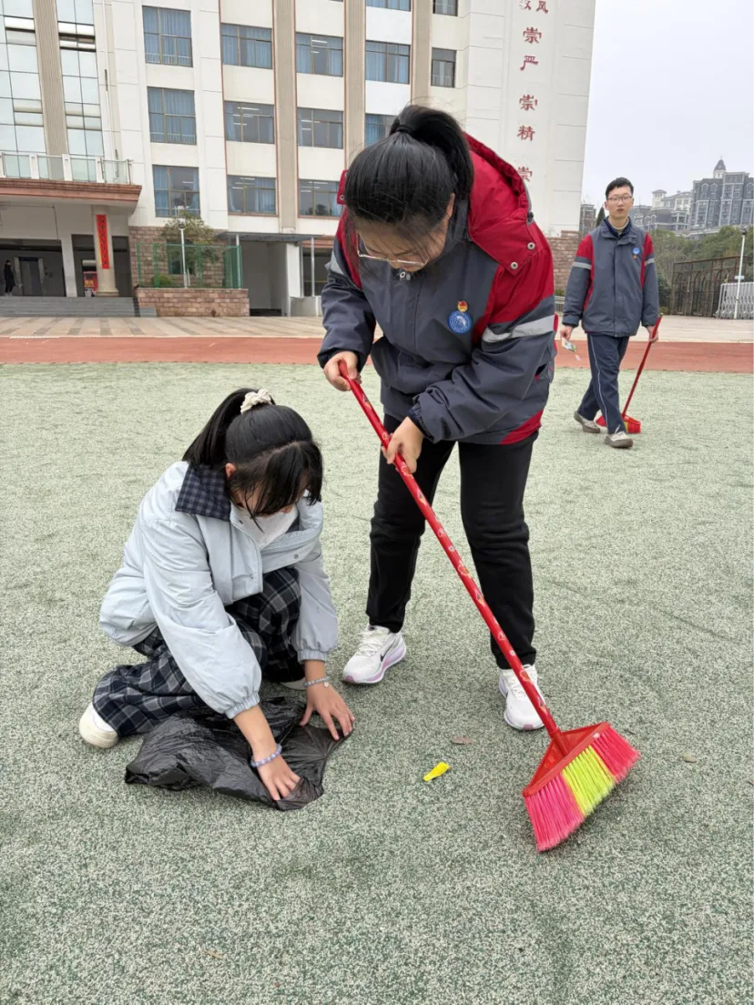 ——南昌大学附属学校红谷滩分校团委开展校园清扫志愿服务活动