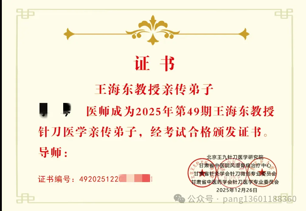 🟤想跟着针刀领域实战专家学真本事?机会来了!甘肃省中医院王海东教授针刀亲传弟子招募正式启动,带你直击临床核心,快速提升诊疗能力。