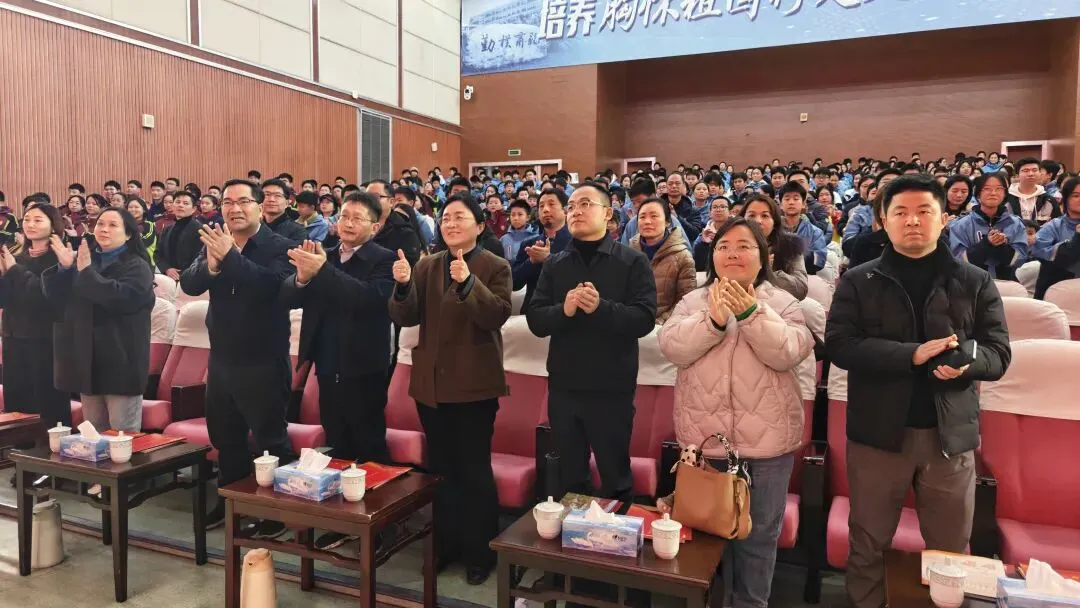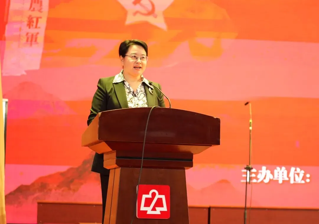 南昌二中党委书记万瑛致欢迎辞。她表示,南昌二中作为英雄城里的百年名校,四十二位校友英烈的名字如星辰般镌刻在精神天空,校史与党史交织、与革命史共鸣。她向于都长征源合唱团致以崇高敬意,感谢他们的第719场、第720场、721场演出,为二中学子带来一堂浸润心灵的“红色思政课”。她寄语同学们从长征精神中汲取信仰之钙,走好属于新时代青年的长征路。