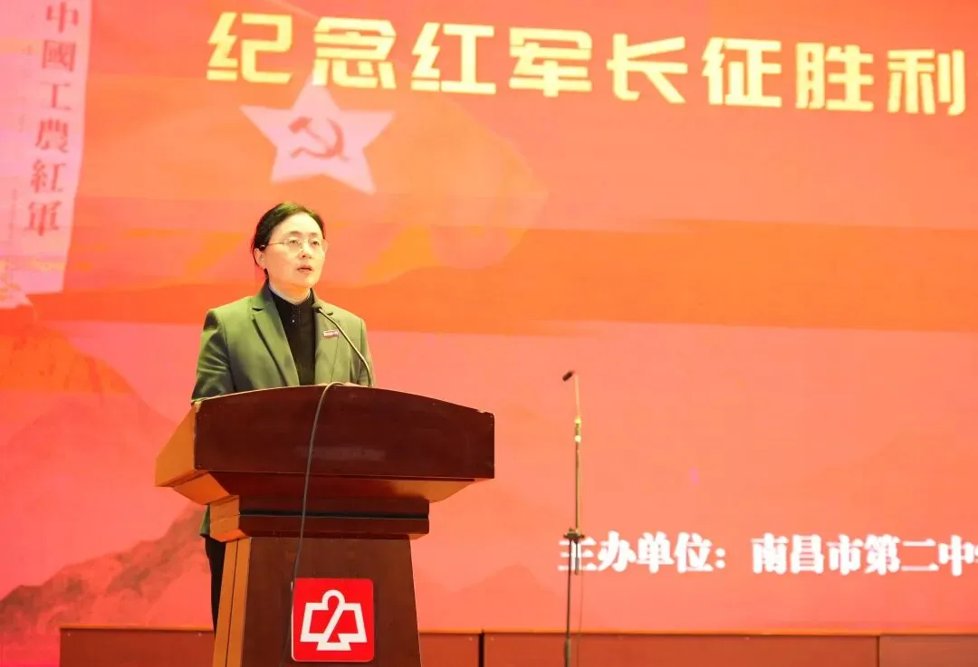 于都县政府党组成员、副县长提名人选、中央红军长征集结出发历史博物馆馆长谢芸华在致辞中回顾了于都作为中央红军长征集结出发地的光荣历史。她表示,于都河畔的渡船承载着红军远征的希冀,南昌城头的枪声打响了武装反抗的第一枪,两地同属赣鄱红色热土,一脉相承红色基因。她热情邀请南昌二中师生走进于都,开启初心之旅,感受长征源头的红色魅力。