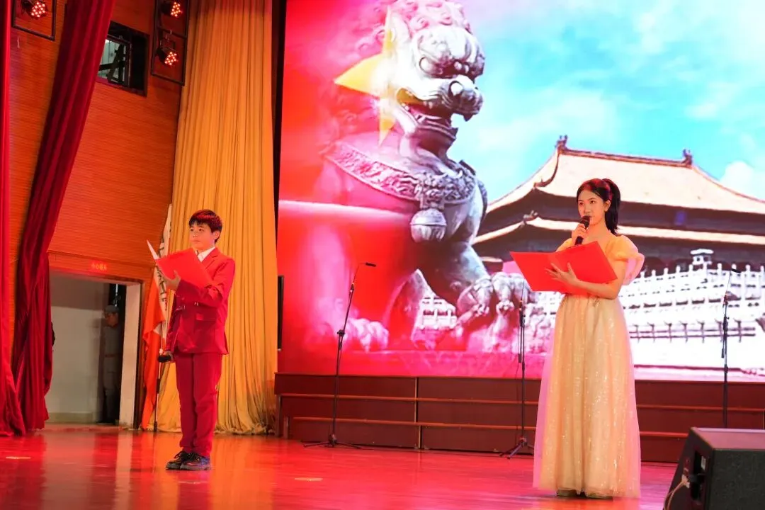 在热烈的掌声中,初中部两位同学深情朗诵方志敏烈士名篇《可爱的中国》。铿锵童声穿越时空,将先烈的赤子之心与美好憧憬娓娓道来,一字一句,直抵人心,为这场红色盛宴注入青春的回响。