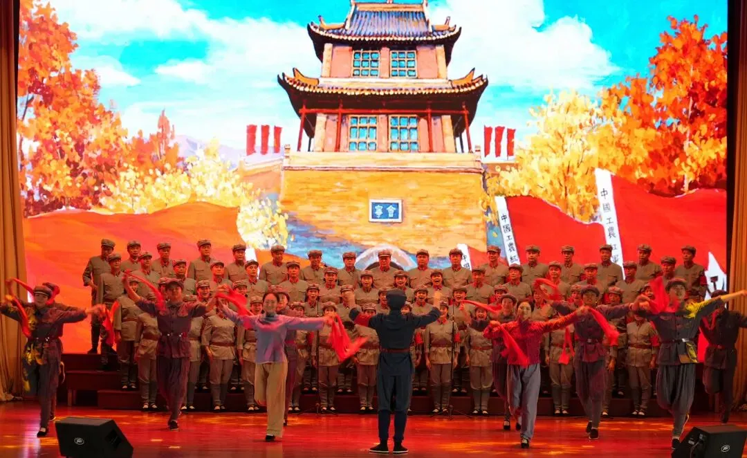 合唱团以饱满的激情演绎了《长征组歌——红军不怕远征难》全曲。指挥邹伟民挥动双臂,团员们用铿锵有力的歌声再现了红军长征的峥嵘岁月。《告别》《突破封锁线》《遵义会议放光辉》《四渡赤水出奇兵》《飞越大渡河》《过雪山草地》《到吴起镇》《祝捷》《报喜》《大会师》——一首首经典曲目,将现场观众带回那段艰苦卓绝、气壮山河的英雄史诗。