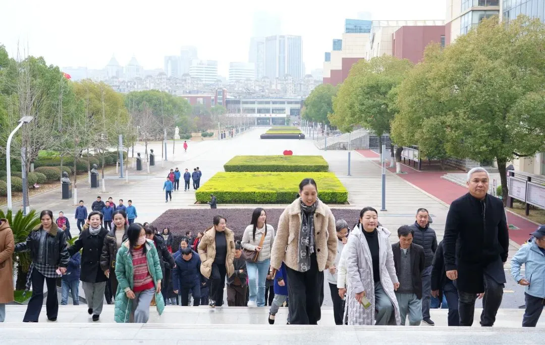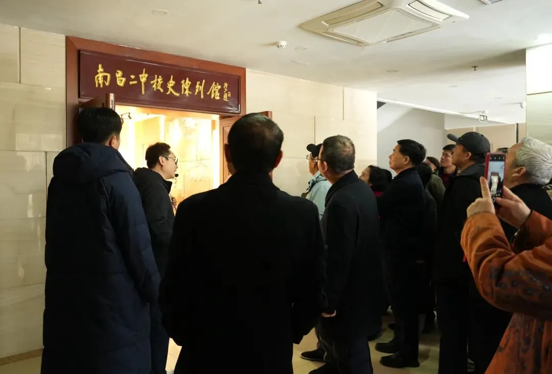 演出间隙,于都县长征源合唱团团员们走进南昌二中校史陈列馆,在校史研究员的带领下,穿越百廿时光长廊,感受学校古色、红色、蓝色、金色和炫色的深厚底蕴。从1901年心远中学(初名“乐群英文学堂”)创校,到42位校友英烈名垂青史,一幅幅历史画卷徐徐展开。团员们驻足凝视,深刻感受这所英雄城百年名校与民族命运同频共振的红色基因。