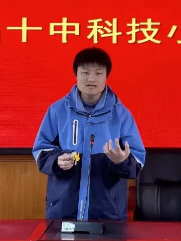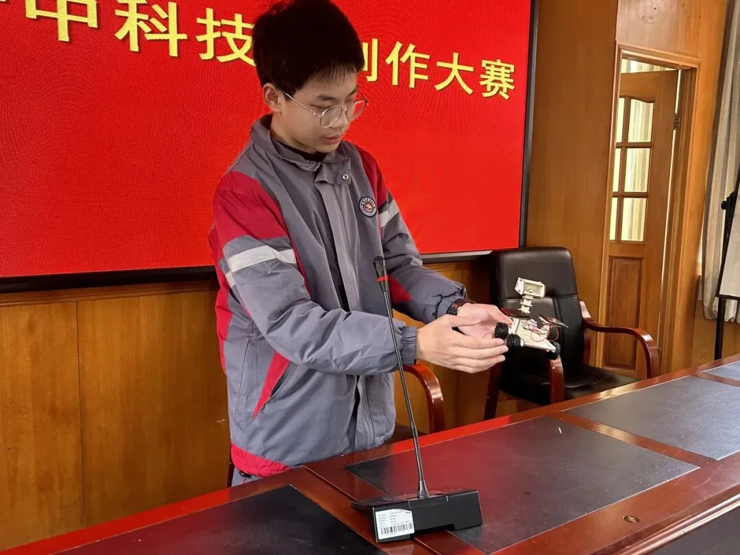 展示环节中,同学们自信满满地走上台,逐一介绍自己的作品:从制作初衷出发,讲述灵感来源——有的源于生活中的不便,希望用科技改善生活;有的出于对科学的热爱,主动探索未知领域;随后详细拆解制作过程,分享从选材、设计、搭建到调试的每一个细节,认真阐述作品背后的科学原理,更坦诚地讲述了制作过程中遇到的困难——或是线路连接反复出错,或是零件固定不够牢固,或是调试多次仍无法达到预期效果,以及自己如何查阅资料、请教老师同学、反复尝试、不断改进,最终攻克难题的经历。
