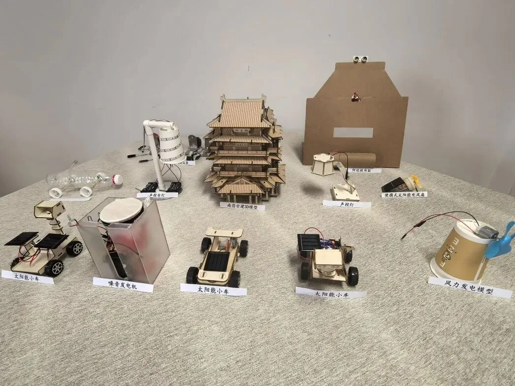 声控台灯、噪音发电机、太阳能小车、风力发电模型、防近视书架、南昌古建3D模型、便携式转运器……每一件作品都凝聚着同学们的心血与巧思,既贴合生活实际,又充满科技气息,尽显十中学子的聪明才智与创新潜力。