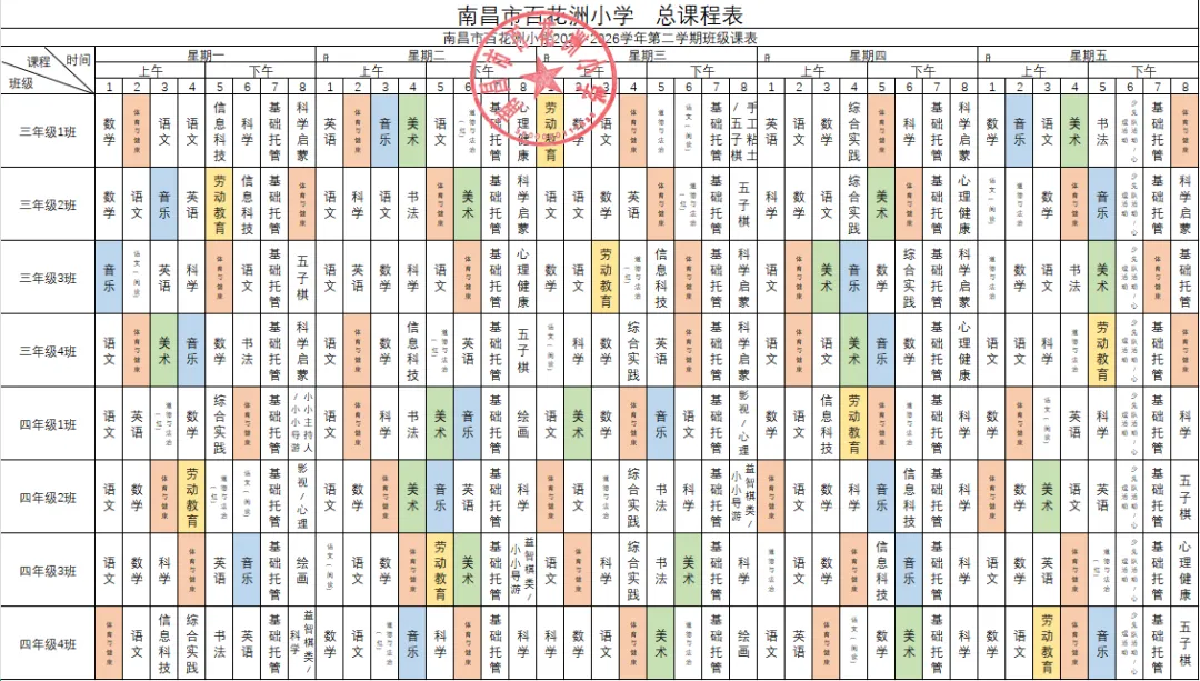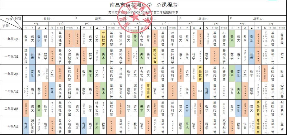 现将我校课程表(含课后服务安排)予以公示,主动接受社会各界监督。