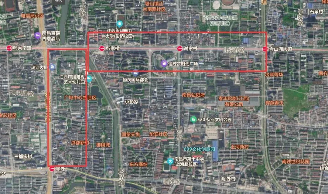该区域范围包括洪都中大道(北京东路—顺外路段)东侧,北京东路(洪都大道—青山湖大道)两侧,共计城镇住宅建筑物214栋。