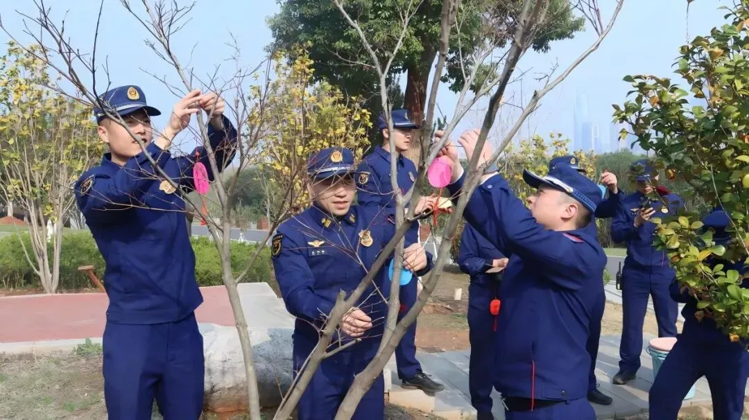 阳春三月万物苏,携手护绿正当时。为深入贯彻落实党的二十大精神,践行“绿水青山就是金山银山”的生态文明理念,深入推动“消媒共建”品牌,近日,南昌市红谷滩区消防救援大队联合新法治报社于南昌市廉文化广场开展“携手同行育新苗 消媒共建促发展”植树节主题活动。20余名消防“蓝朋友”与新闻工作者以铁锹为笔、汗水为墨,共同书写“火焰蓝+媒体蓝”的生态守护篇章。活动现场,大队指战员与报社工作人员混编成多支队伍,从领取工具到树苗栽种全程配合默契。挥锄挖坑深度需达50厘米、回填表土至三分之二处扶正树苗、分层夯实培土浇透定根水,一时间,植树现场呈现出一片热火朝天的劳动景象,欢声笑语回荡在整个场地……在园林老师的指导下,10棵象征热血与忠诚的红枫树昂然挺立,每棵树悬挂的祈愿牌上,既有消防员“愿每一次逆行都平安归来”的朴素心愿,也有新闻人“以笔为盾守护英雄城”的铿锵誓言。“每一棵树苗的种下,都是为绿色生态增添一份希望,都是在为守护我们的美丽家园贡献力量!”消防员麦玉山说道。