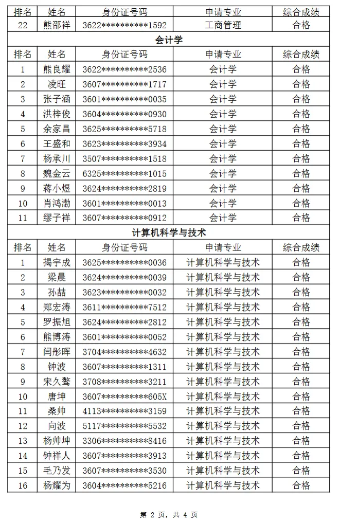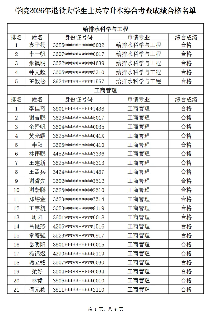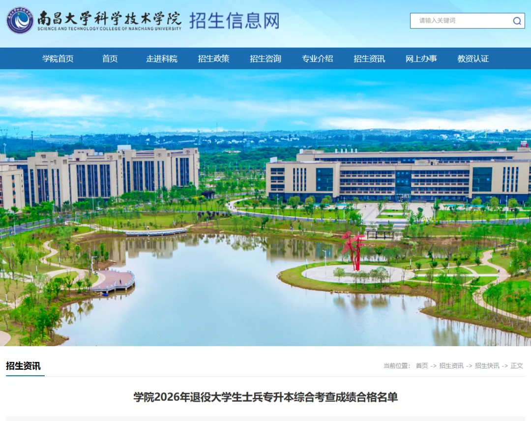 >南昌大学科学技术学院2026年退役大学生士兵专升本综合考查成绩合格名单
