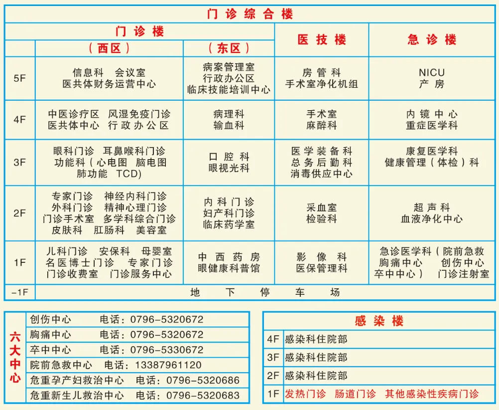 3.感染楼:肝病门诊、结核门诊、肠道门诊、发热门诊。
